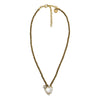 Necklace designed with bronze-toned spheres that create a warm, vintage-inspired base. The pendant features a natural crystal heart enriched by side zirconia accents, adding dimension and refined sparkle. The contrast between the metallic warmth of the spheres and the brightness of the crystal gives the piece a unique autumn aesthetic with a modern edge.