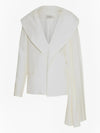 Blazer Eana by NERIAGE a multifunctional piece that redefines modern tailoring. Designed with a deep V-neckline and detachable sleeves secured by discreet buttons, this blazer transforms into a sleek vest, offering two distinct styling options in one. Its tailored cut ensures elegance while maintaining comfort and fluidity.